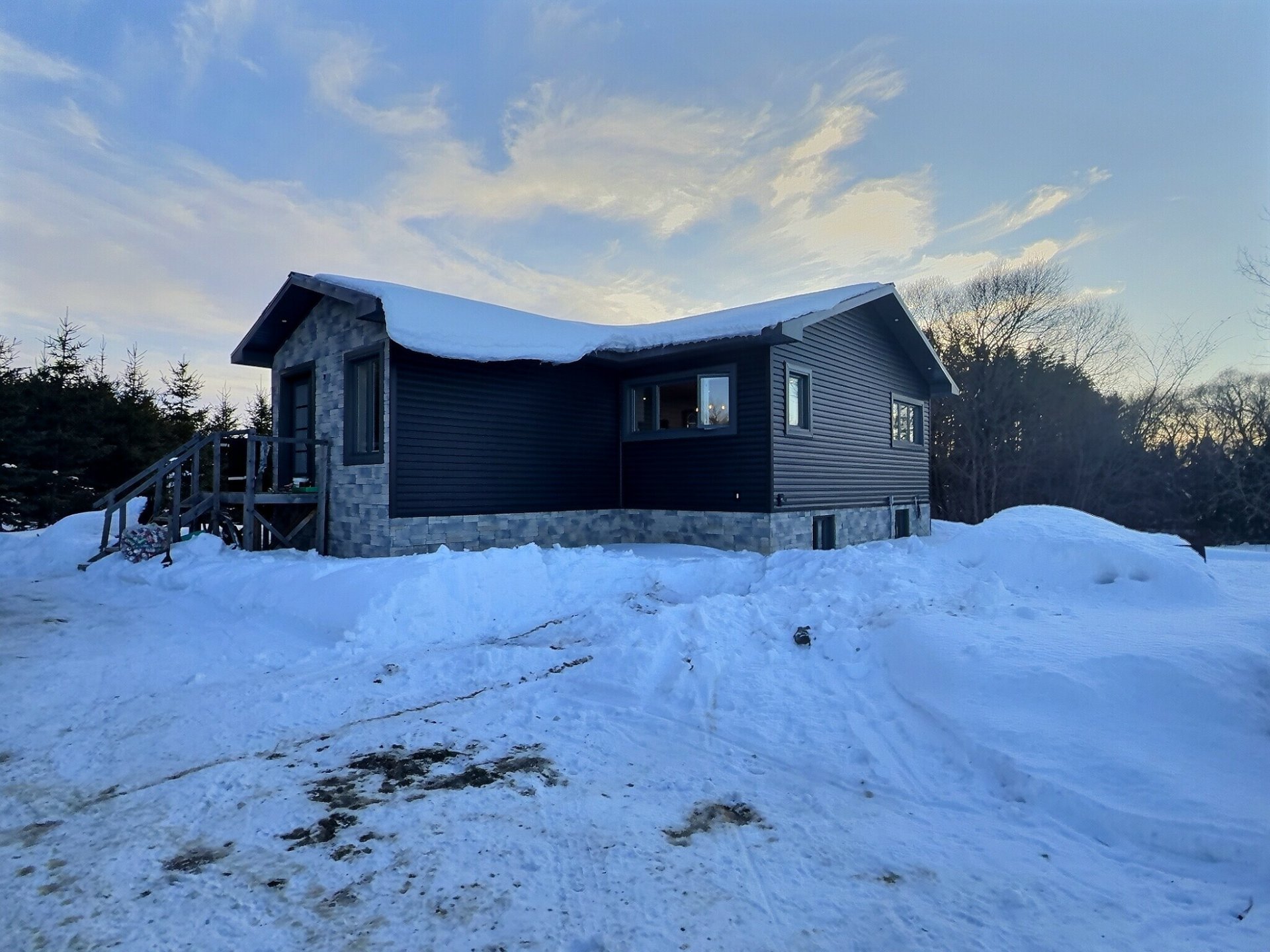 Recent construction started in 2022 on an approx. 1.43-acre agricultural-zoned lot, just 2 minutes from the village of Notre-Dame-du-Nord. Exterior is completed and many interior improvements are already done, allowing you to finish the space to your taste. Connected to municipal water and equipped with a new septic system designed for a 2-bedroom residence. A great opportunity to complete your project, create a space that reflects you, and enjoy peaceful country living with hobby farm potential.