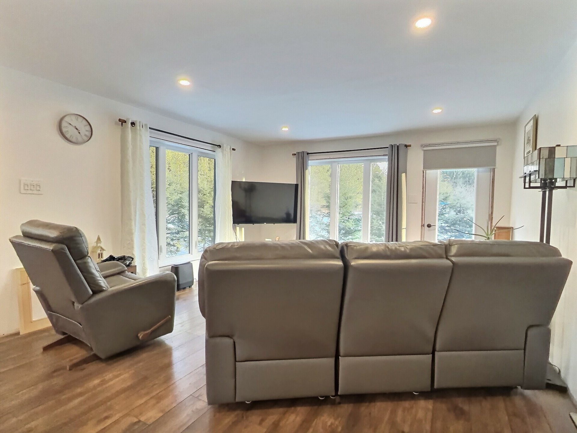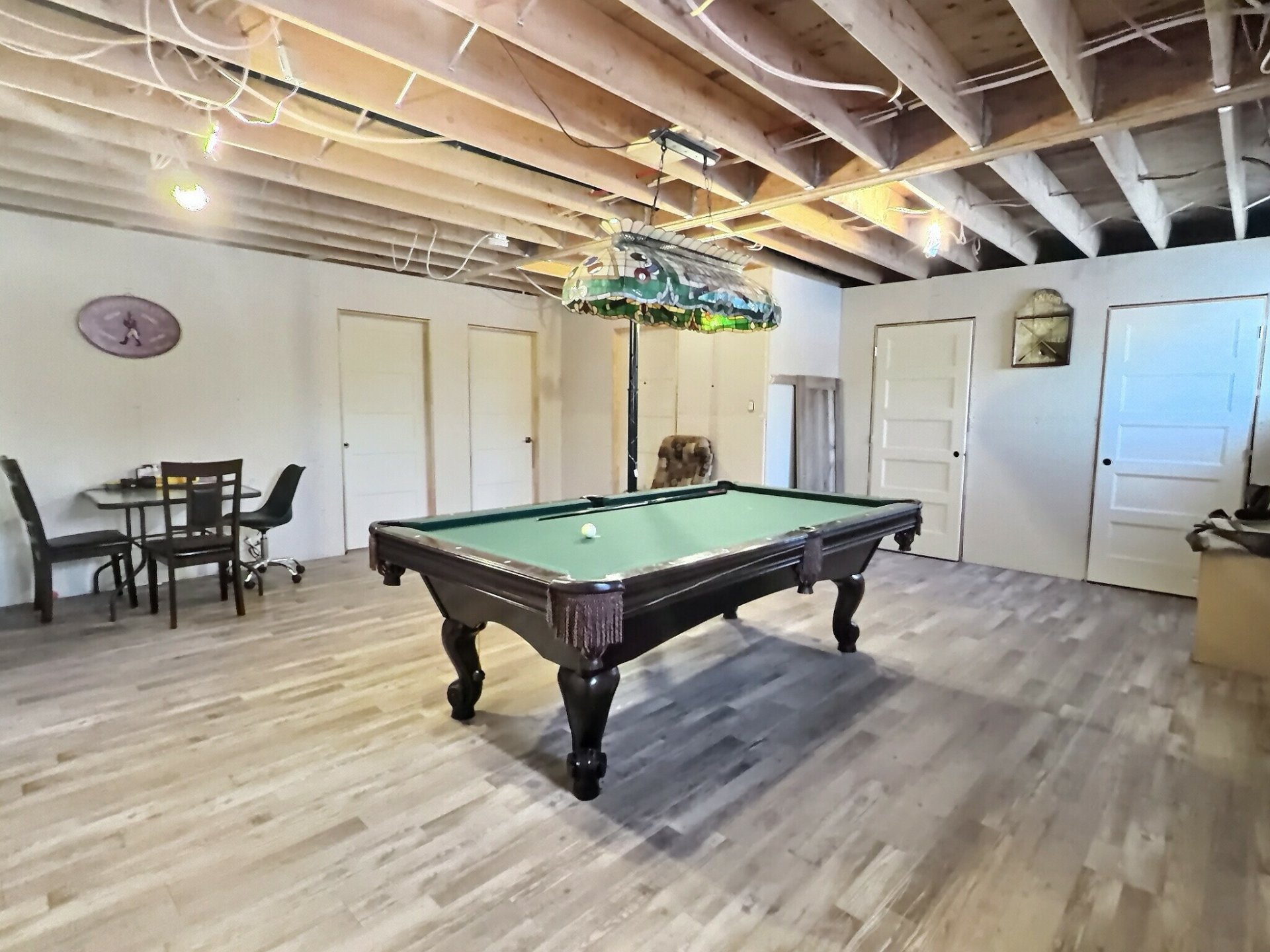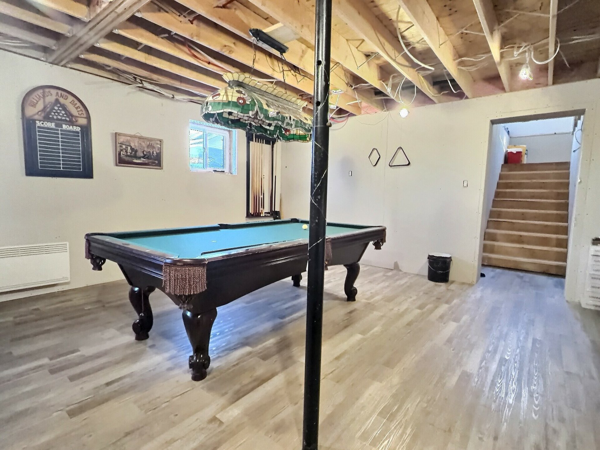 Exclusions : All contents of the garage, everything located on the property, the blue shed, the chicken coop, the garage electrical panel and its power supply cable, garage LED lights, the light fixture above the pool table, the seller's belongings and furniture, 3 bins (garbage, compost, recycling)