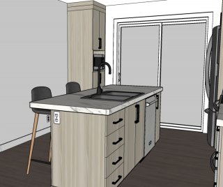Inclus : 2 bacs (poubelle, recyclage), luminaires fixes