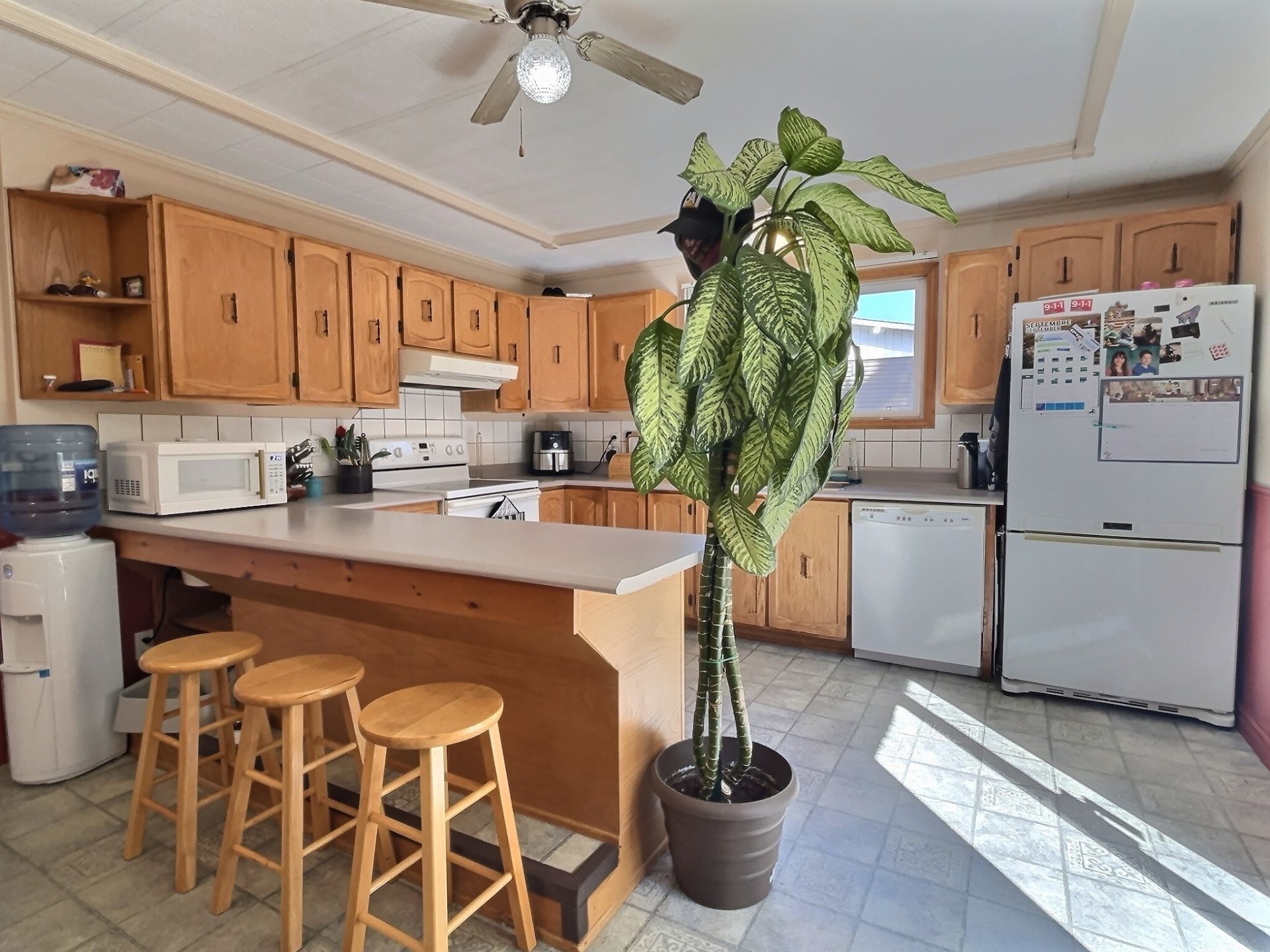Inclus : 3 bacs, luminaires fixes, 2 ouvre-portes électriques (non installés), auvent, réfrigérateur, cuisinière, lave-vaisselle, tondeuse à gazon motorisée, souffleuse à neige, foyer extérieur, table extérieure, parasol et chaises, tout matériel se trouvant au sous-sol (plancher, peinture, etc.), poêle aux granules, tapis roulant.