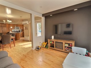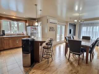 Grande maison familiale offrant 4 chambres, piscine hors terre chauffée et immense garage double de 37' x 45' avec lift et compresseur. Pour les amateurs d'équestre : écurie avec 2 box et parc à chevaux clôturé. Profitez de la tranquillité de la campagne à Saint-Eugène-de-Guigues, dans un cadre idéal pour conjuguer confort, espace et liberté.